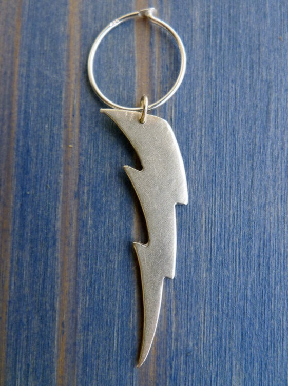 Flash Gordon Inspired Silver Lightning Bolt Earring
